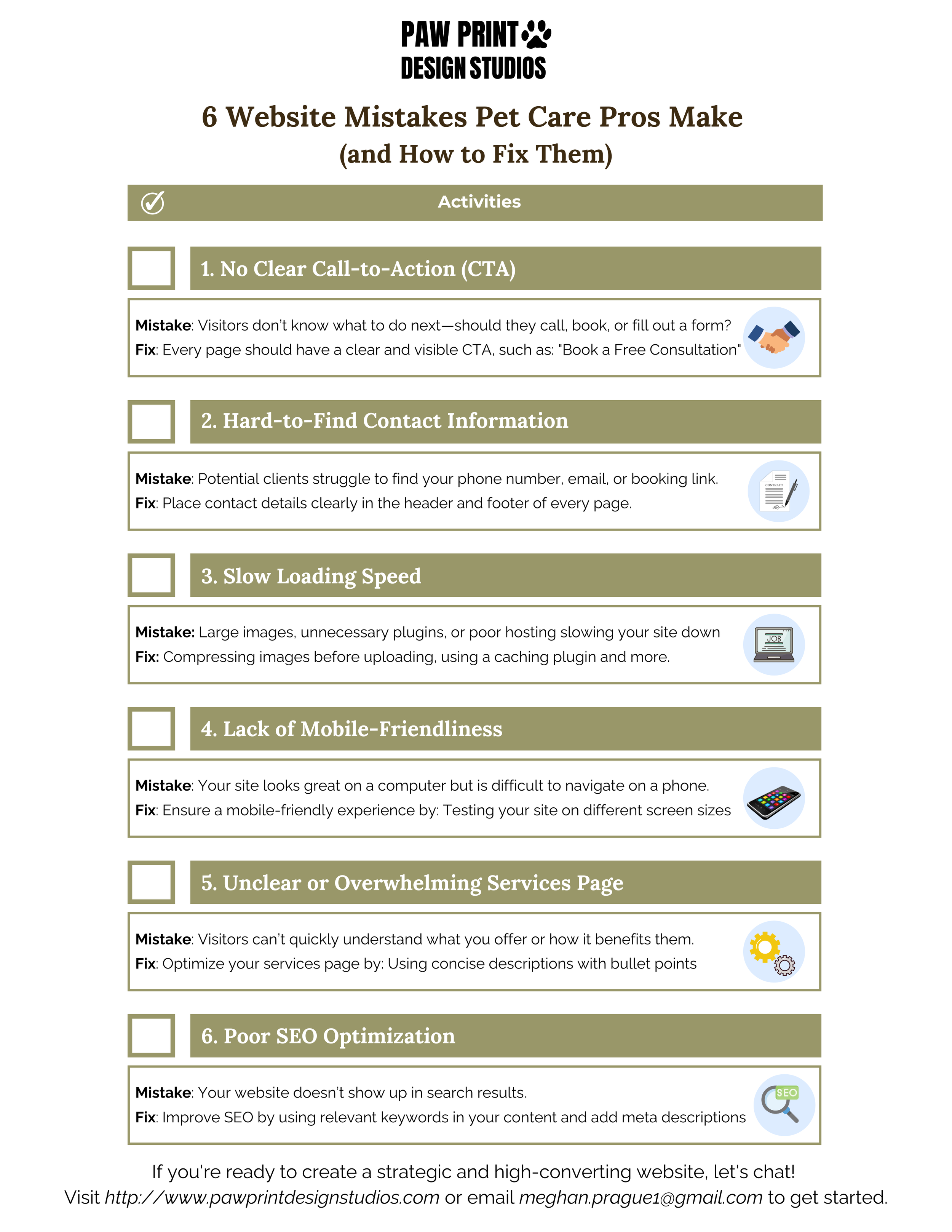 Through my signature PAWS Method I can help you develop a strategy and website that attracts, books, and sells—without chasing down leads or relying on social media alone."